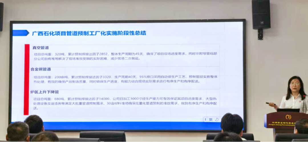 金童裝備公司常務副總兼總工程師韓越女士作“管道預制智能制造示范項目”的介紹及實施經驗分享。管道預制工廠化模式是工廠化預制的延伸,預制工廠化實施的主體是專業化的制造廠,質量控制體系與檢試驗設備、機械化作業與信息化管理等完全按照設備制造廠的模式實施,確保了產品質量的可控性和可追溯性;預制工廠的廠房、專業化設備、專業化人員等相對是穩定并且是共享型的,為整個市場服務,不是針對某個項目,可有效的降低項目建設臨時設施的投入;多個項目同步實施可大比例的提高原材料利用率,同時庫存材料可解決項目建設及后續運行維護過程緊急用料的需求,有效的為管道系統長周期穩定運行提供保障;標準化預制工作流程有利于加快施工進度、縮短建設周期、提高管道建設的效率和質量;管道預制工廠化模式是管道預制件的商品化供應的基礎,其獨有的專業性、穩定性、經濟性、共享性,決定管道預制工廠化可以為管道項目建設提供最為優良的解決方案。